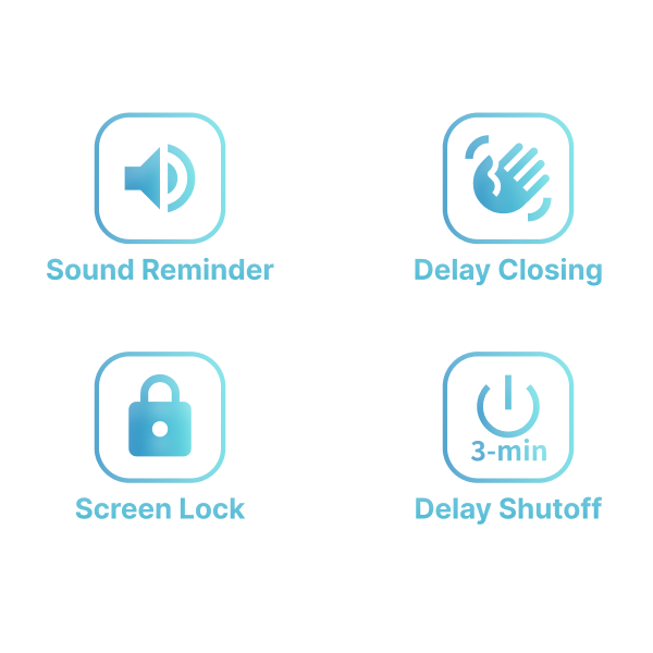 Sound reminder and 3 second delay closing designed provide safer operation while smoke plate is working. Screen Lock Function prevents accidental start when cleaning the range hood