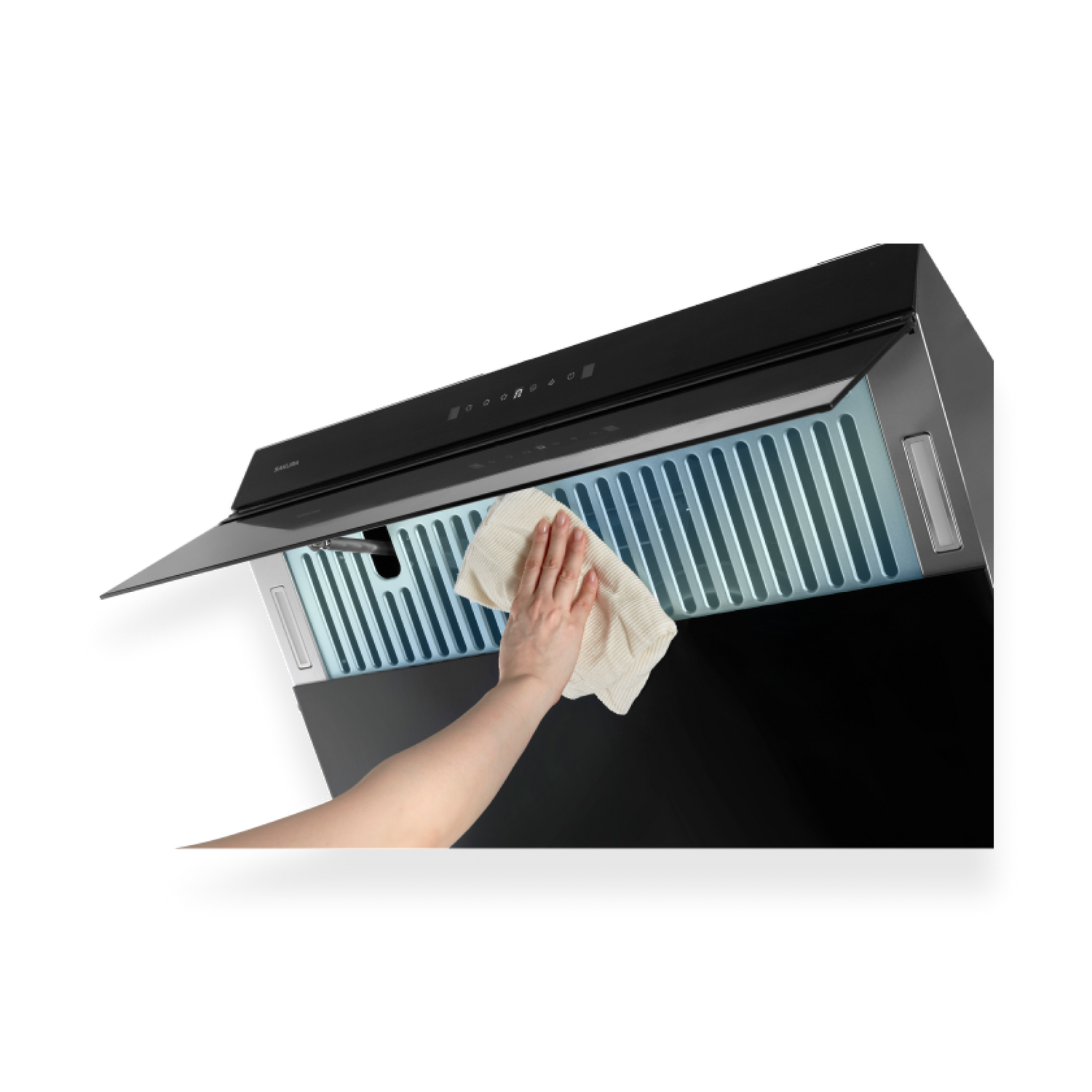 90° Golden optimum angle prevents fumes from escaping, and creates efficient suction zone. Perfectly captures smoke from front and back burners.